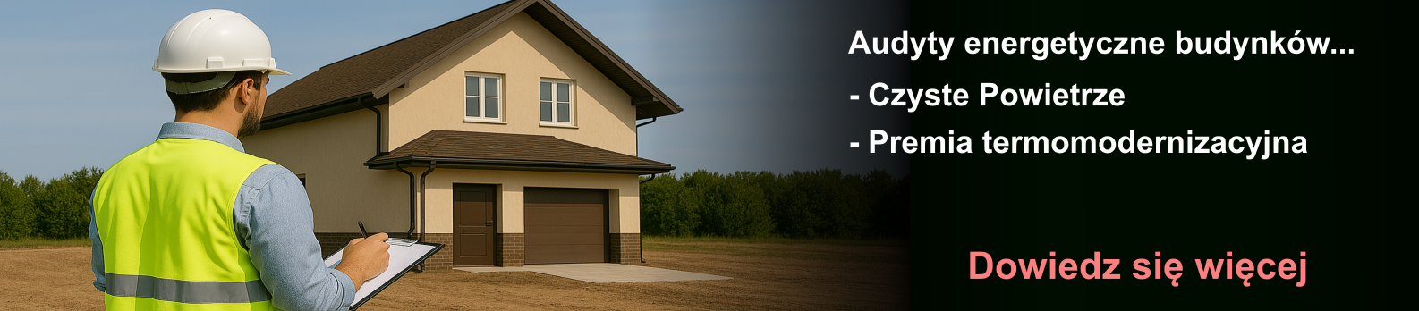 Głównym obszarem, w którym się specjalizujemy, jest realizacja audytów energetycznych budynków, które są pierwszym krokiem w kierunku poprawnie przeprowadzonej termomodernizacji. Audyty te wykonujemy głównie pod dotacje w ramach Czystego Powietrza oraz premii termomodernizacyjnej.
